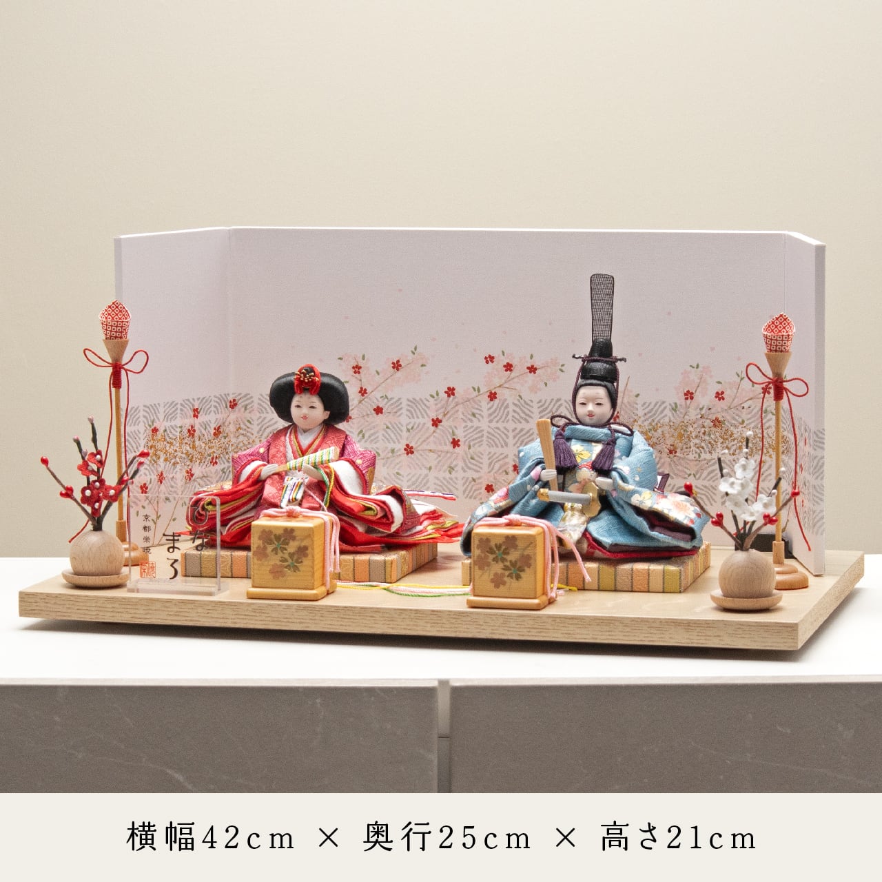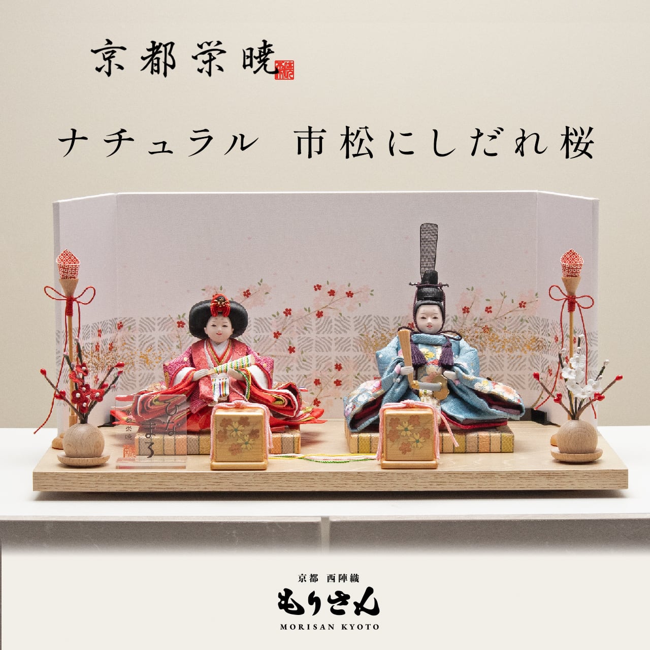 【京都栄暁作】 ひなまろ 雛人形 「ナチュラル 市松にしだれ桜」 親王飾り 名前旗 プレゼント 26hina-002506