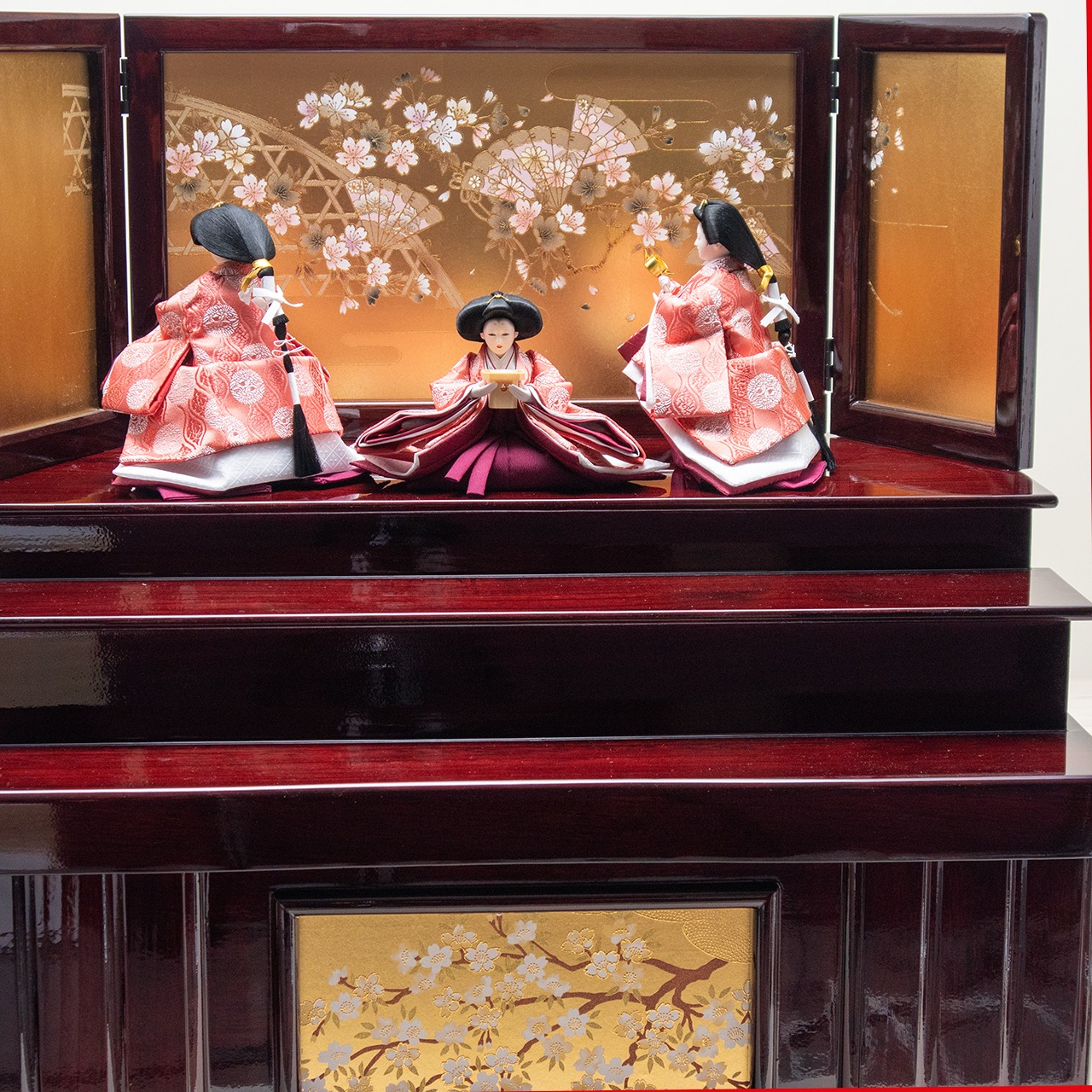 【京都栄暁作】 雛人形 「桐製溜塗 金彩金箔扇桜 」 三段収納飾り 名前旗 プレゼント 26hina-8347623