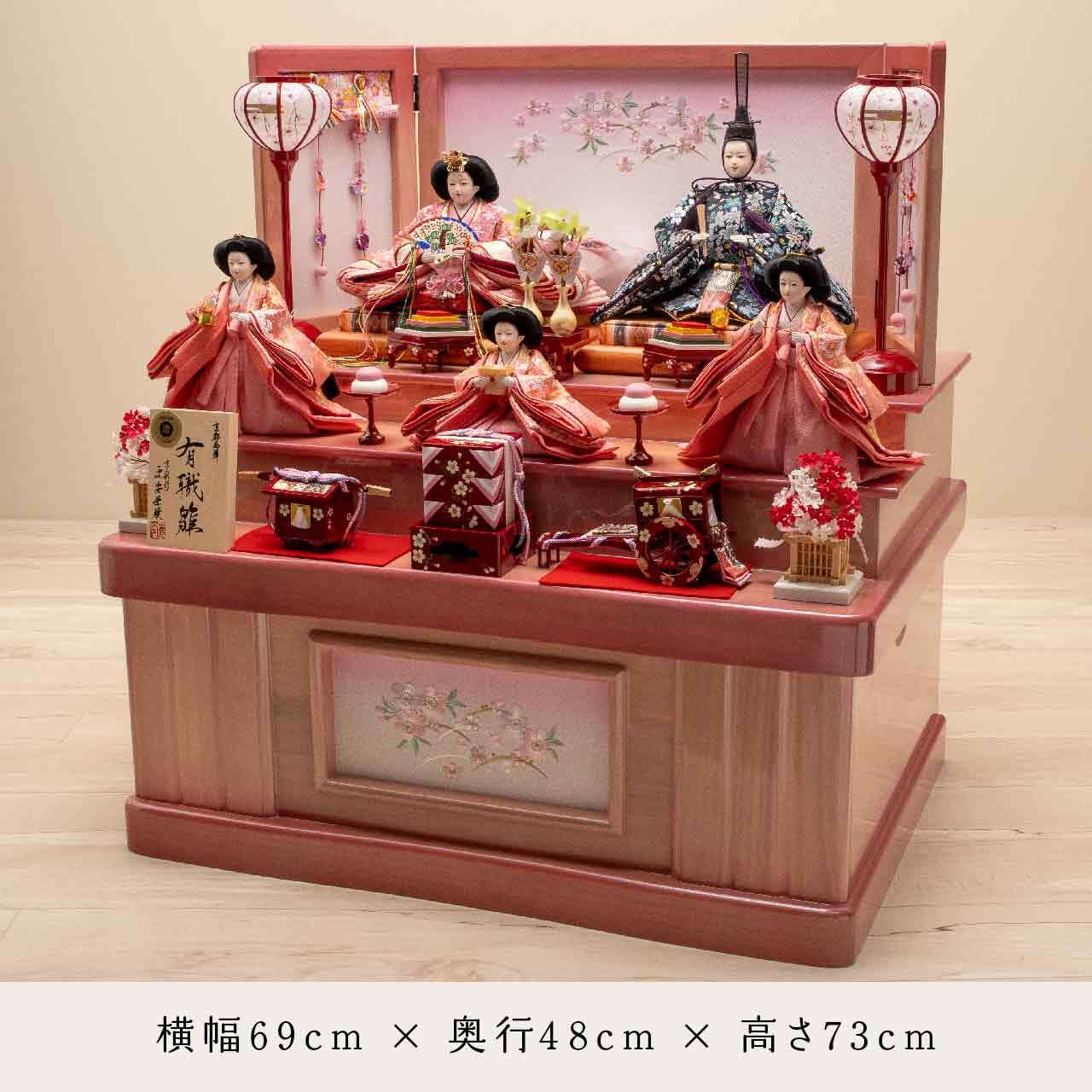 【京都栄暁作】 雛人形 「桐製パールピンク三段飾収納 」 名前旗 プレゼント 26hina-8348323
