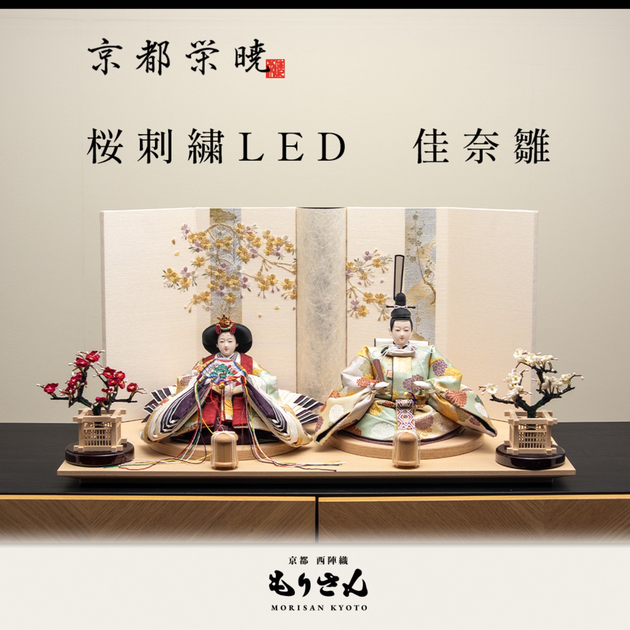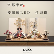 【京都栄暁作】 雛人形 「桜刺繍LED 佳奈雛」 親王飾り 名前旗 プレゼント 26hina-03011