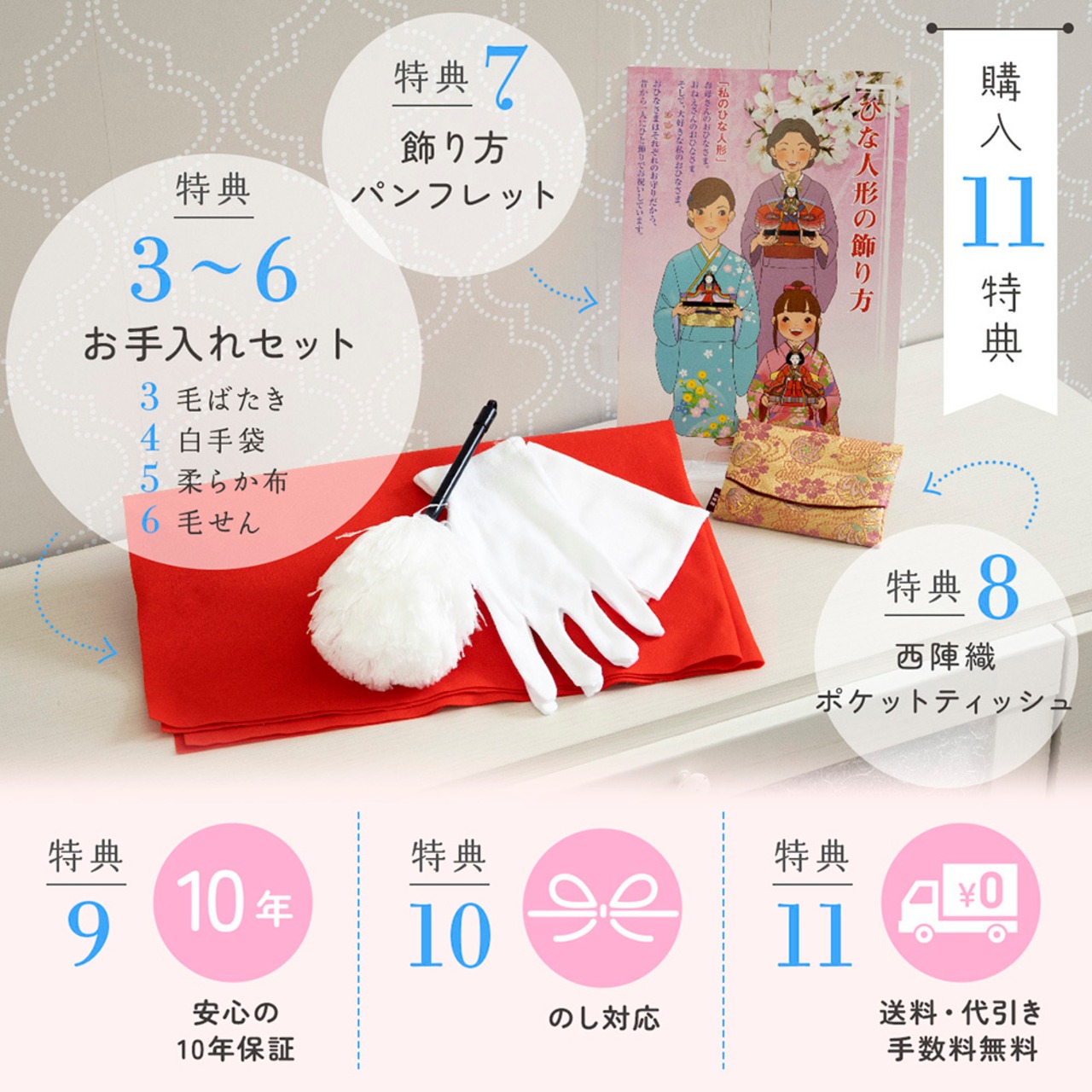 本商品は職人が手作りで製作しているため、生地の取り方により人形の着物の柄や表情が画像と異なる場合がございます。また、手作り特有の傷や擦れ等がある場合がございますが、ご了承の程、お願い致します。