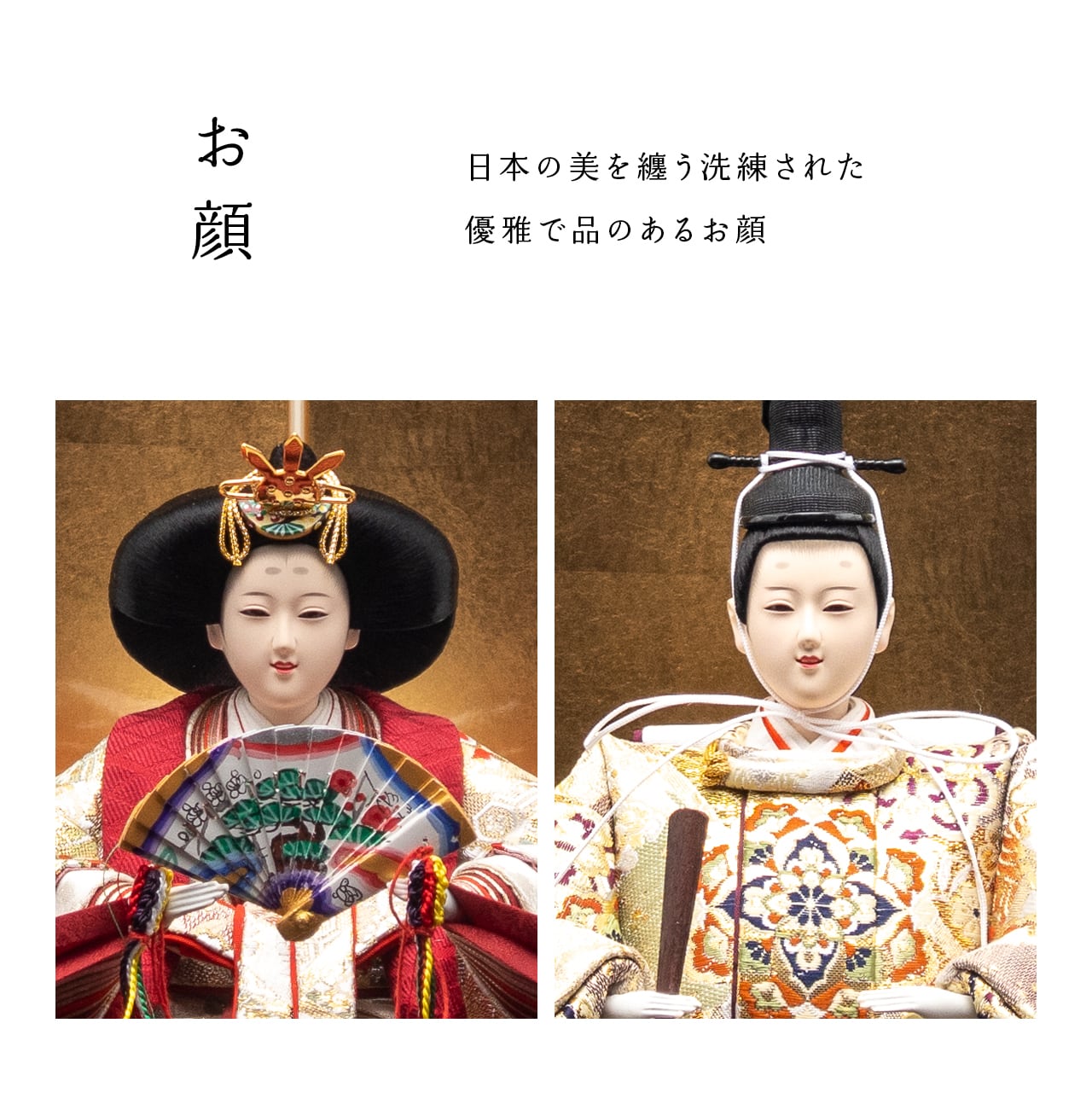 本商品は職人が手作りで製作しているため、生地の取り方により人形の着物の柄や表情が画像と異なる場合がございます。また、手作り特有の傷や擦れ等がある場合がございますが、ご了承の程、お願い致します。