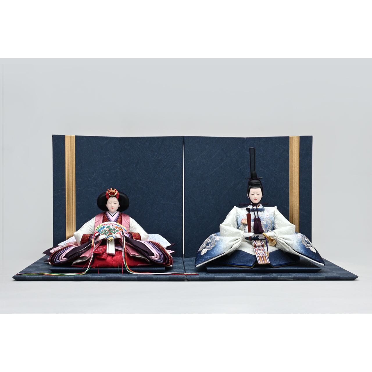 飾台(紺色市松模様)、親王台×2