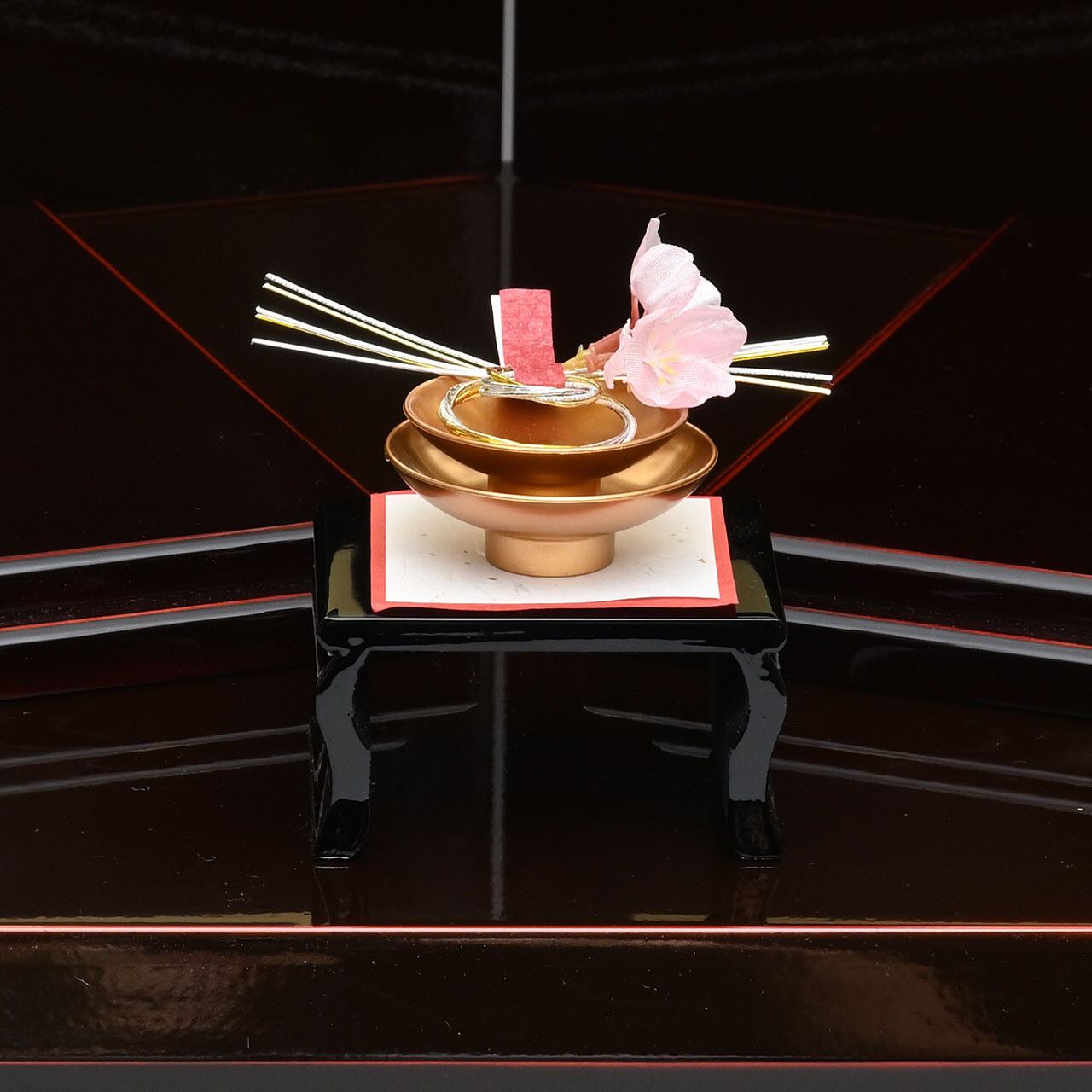 飾台(ワイン塗)、親王台×2、お道具(盃セット×1)、和紙行灯×1