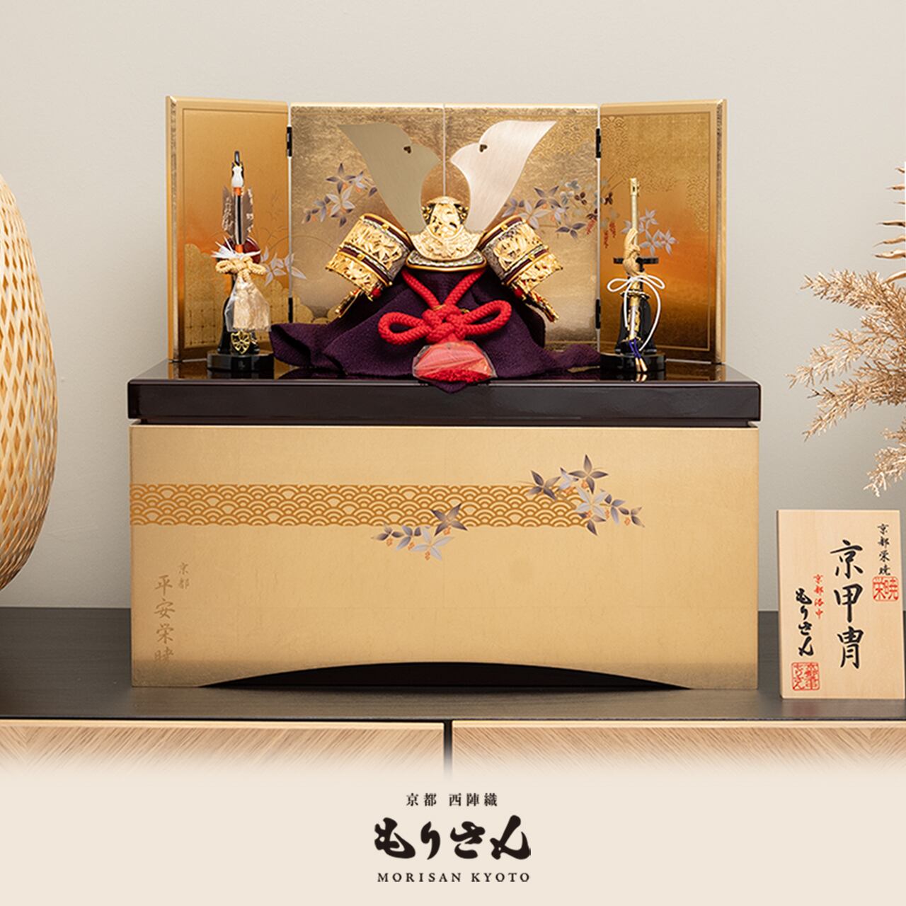 【京都栄暁作】 五月人形 兜飾り 8号 竹雀之兜 金箔白百合収納 名前旗 プレゼント 24na-kabuto04143