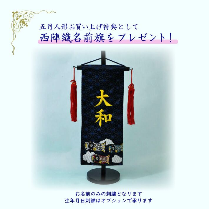 名前旗(①祝節句、②お子様のお名前、③生年月日を刺繍致します。)